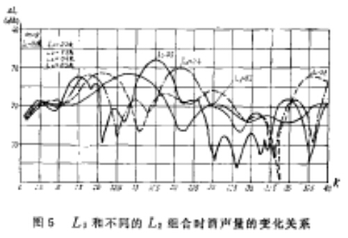 如圖所示:當(dāng)?shù)谝磺婚L度L1為第二腔長度的L2的一倍時,雙腔消聲器明顯地對某些頻率失效,在某些頻段出現(xiàn)較深的低谷,因此在設(shè)計雙腔擴(kuò)張式消聲器時,應(yīng)避免采用L1/L2=2的結(jié)構(gòu)方案。