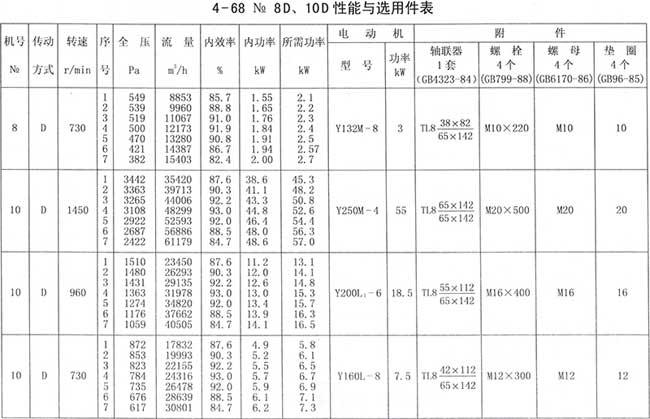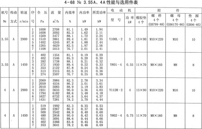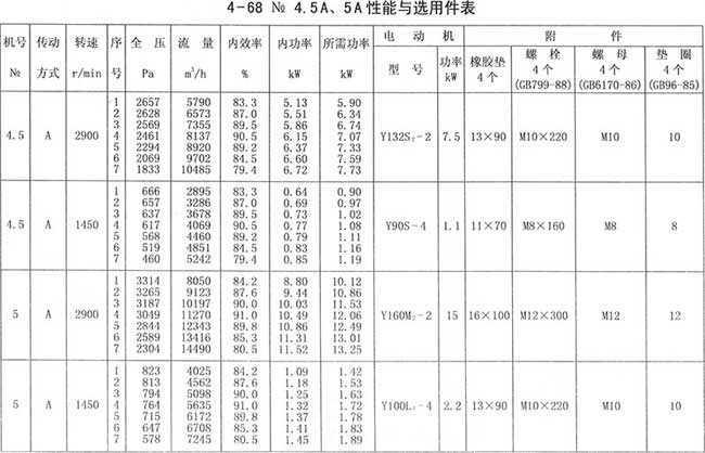 4、周口4-68離心風機性能與選用件表